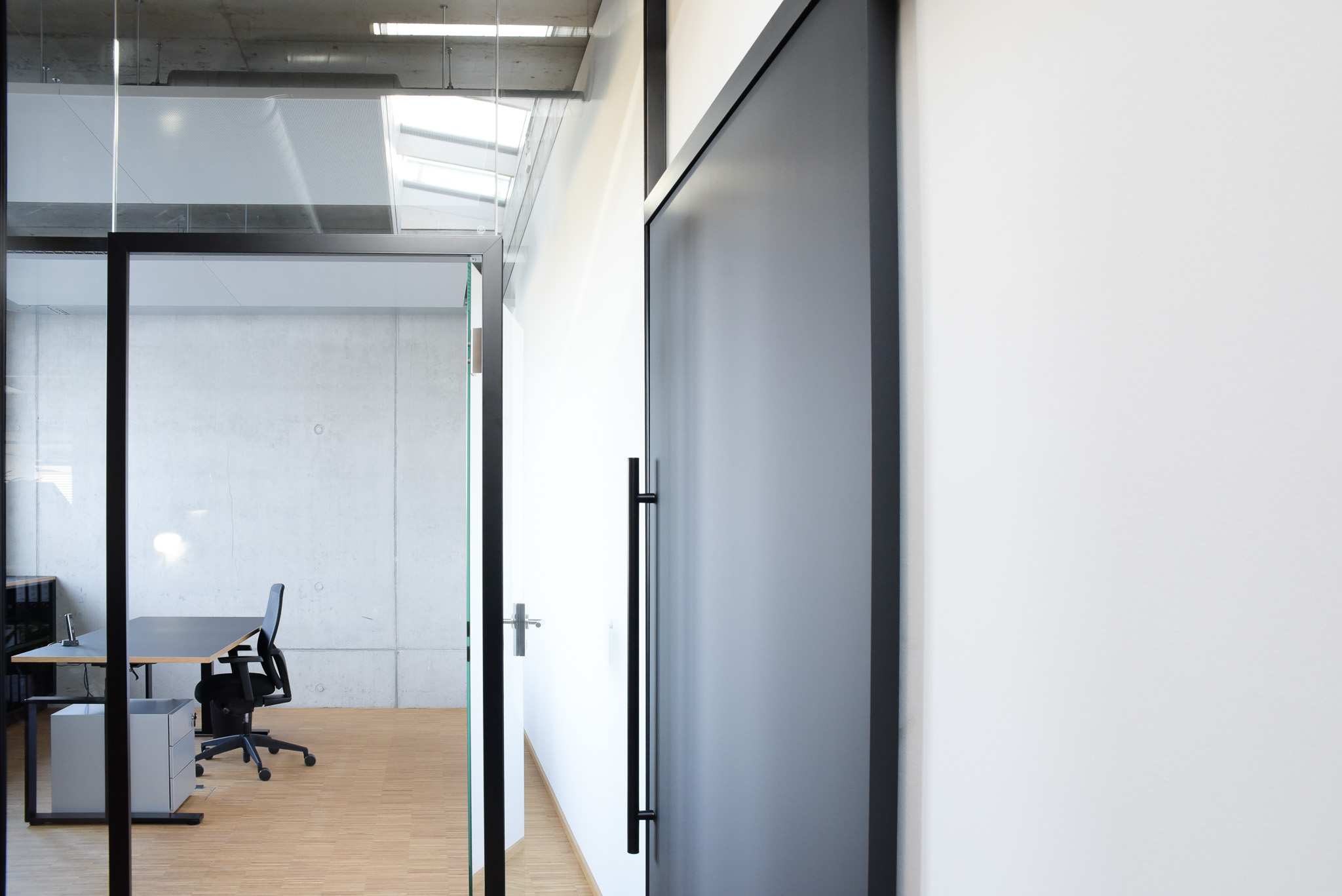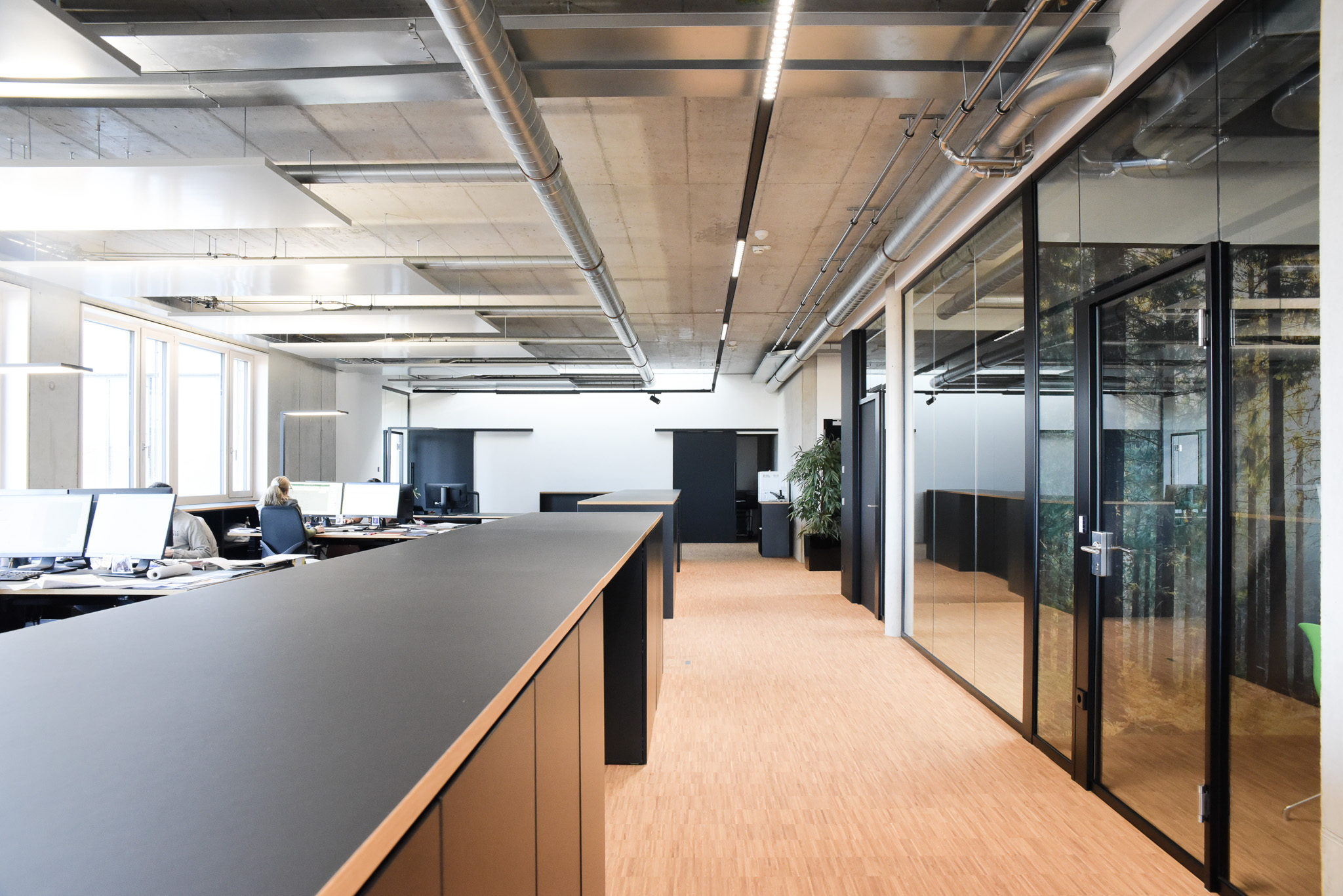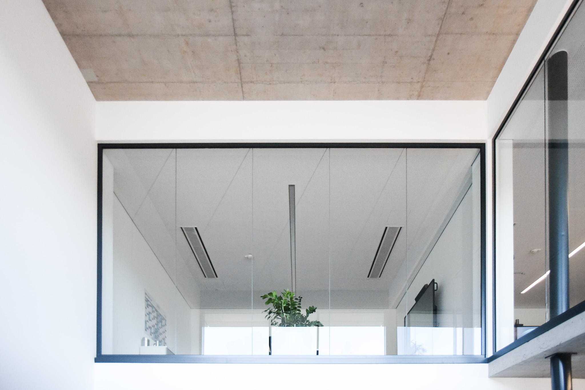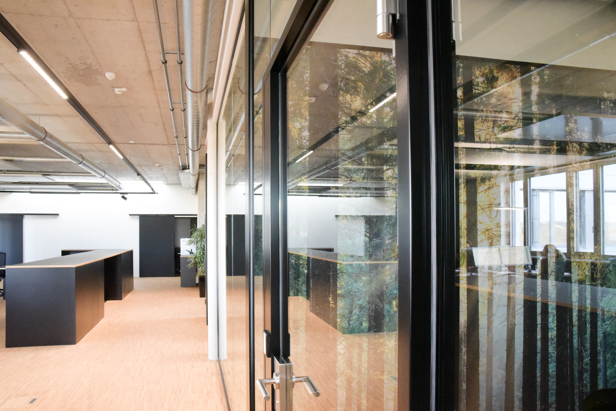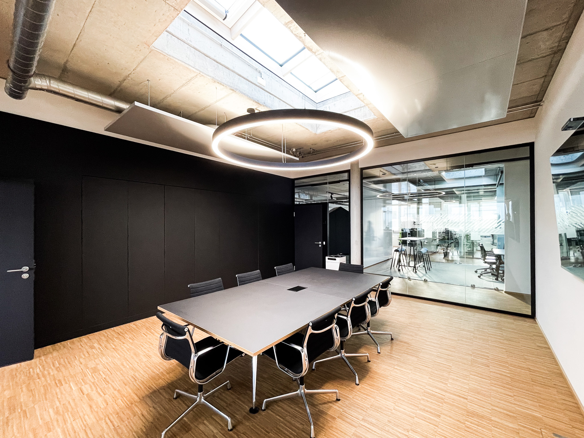 Dank des Systemtrennwand-Konzepts entstehen transparente Besprechungsräume, die sich optisch nahtlos in das Gesamtdesign integrieren. Der großzügige